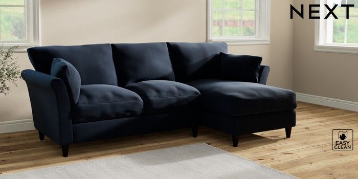 7.2.10 Buy Hartley Relaxed Sit Medium Sofa Chaise - Right Hand Fine Chenille Easy Clean Dark Navy Blue Low Conical - Dark from the Next UK online shop Click here to use our accessible website