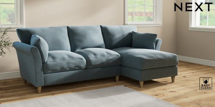 7.2.10 Buy Hartley Relaxed Sit Medium Sofa Chaise - Right Hand Fine Chenille Easy Clean Mid Blue Low Conical - Light from the Next UK online shop Click here to use our accessible website