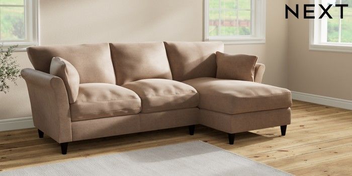 7.2.10 Buy Hartley Relaxed Sit Medium Sofa Chaise - Right Hand Luxe Chenille Mid Natural Low Conical - Dark from the Next UK online shop Click here to use our accessible website