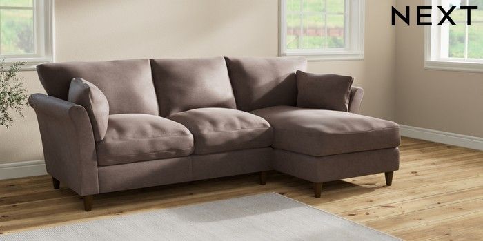 7.2.10 Buy Hartley Relaxed Sit Medium Sofa Chaise - Right Hand Luxe Chenille Mink Brown Low Conical - Mid from the Next UK online shop Click here to use our accessible website
