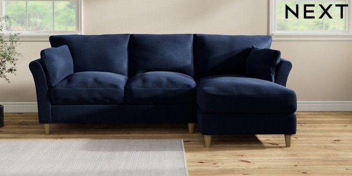 7.3.1 Buy Hartley Relaxed Sit Medium Sofa Chaise - Right Hand Luxe Chenille Navy Blue Low Conical - Light from the Next UK online shop