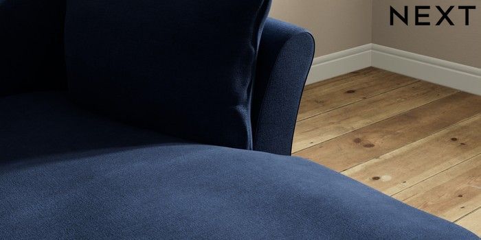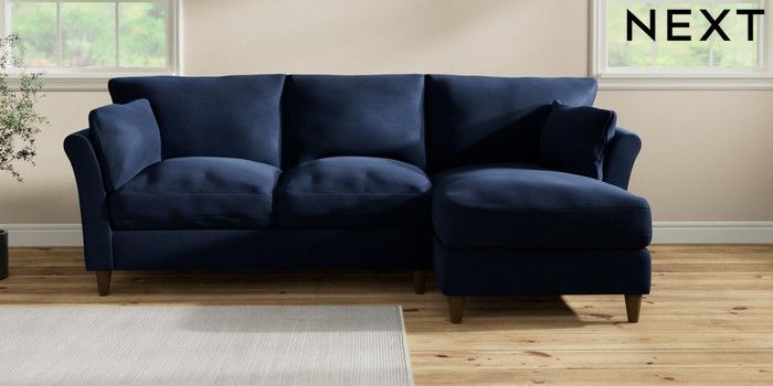 7.3.1 Buy Hartley Relaxed Sit Medium Sofa Chaise - Right Hand Luxe Chenille Navy Blue Low Conical - Mid from the Next UK online shop