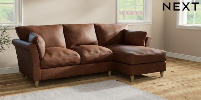 7.2.10 Buy Hartley Relaxed Sit Medium Sofa Chaise - Right Hand Monza Faux Leather Easy Clean Chestnut Brown Low Conical - Light from the Next UK online shop Click here to use our accessible website