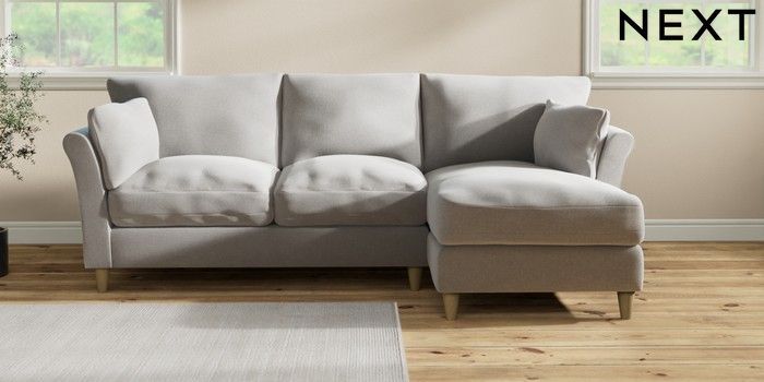 7.3.1 Buy Hartley Relaxed Sit Medium Sofa Chaise - Right Hand Natural Mix Light Grey Low Conical - Light from the Next UK online shop Click here to use our accessible website