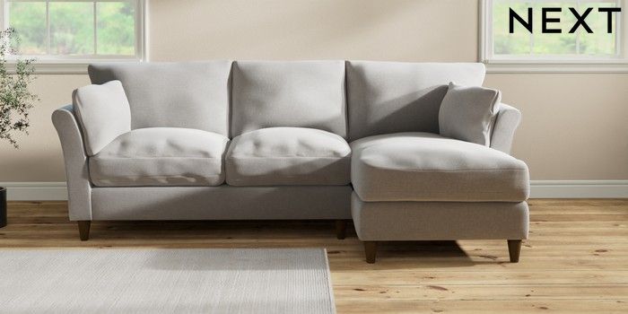 7.3.1 Buy Hartley Relaxed Sit Medium Sofa Chaise - Right Hand Natural Mix Light Grey Low Conical - Mid from the Next UK online shop