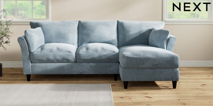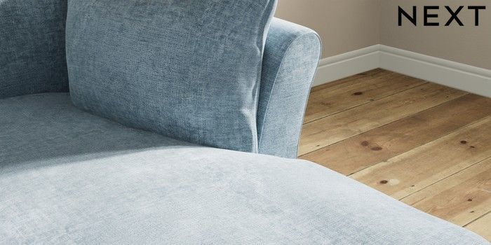7.3.1 Buy Hartley Relaxed Sit Medium Sofa Chaise - Right Hand Plush Chenille Light Blue Low Conical - Dark from the Next UK online shop
