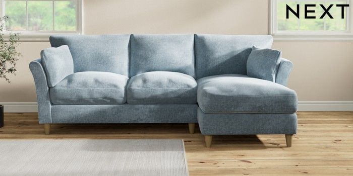7.3.1 Buy Hartley Relaxed Sit Medium Sofa Chaise - Right Hand Plush Chenille Light Blue Low Conical - Light from the Next UK online shop