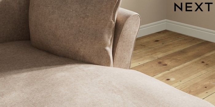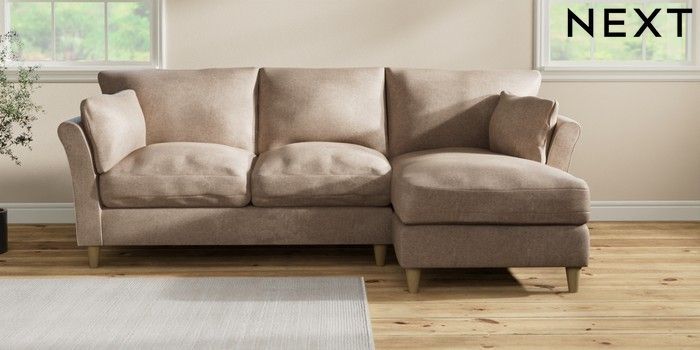 7.3.1 Buy Hartley Relaxed Sit Medium Sofa Chaise - Right Hand Plush Chenille Mid Natural Low Conical - Light from the Next UK online shop