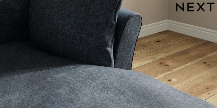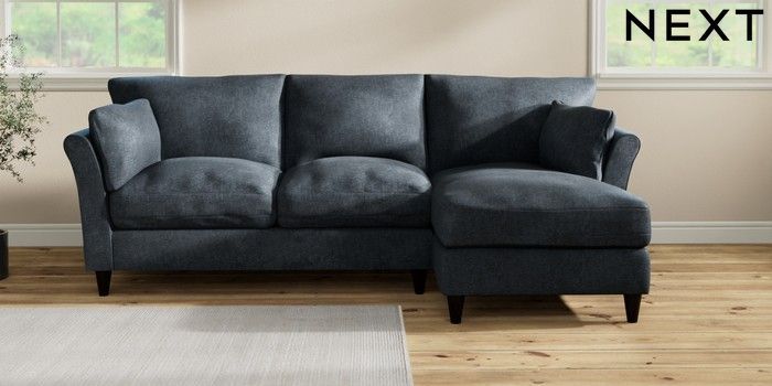 7.3.1 Buy Hartley Relaxed Sit Medium Sofa Chaise - Right Hand Plush Chenille Slate Blue Low Conical - Dark from the Next UK online shop