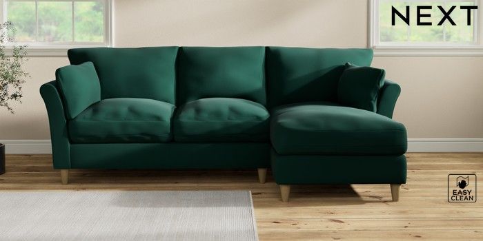 7.3.1 Buy Hartley Relaxed Sit Medium Sofa Chaise - Right Hand Plush Velvet Easy Clean Bottle Green Low Conical - Light from the Next UK online shop