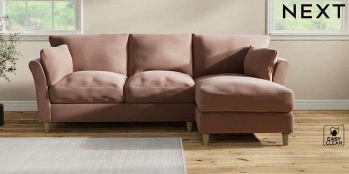 7.3.1 Buy Hartley Relaxed Sit Medium Sofa Chaise - Right Hand Plush Velvet Easy Clean Mid Natural Low Conical - Light from the Next UK online shop