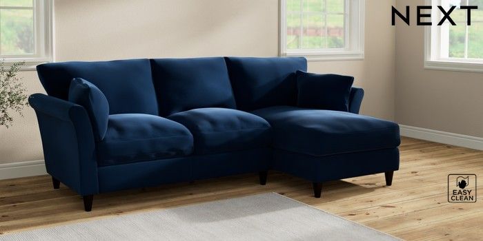 7.2.10 Buy Hartley Relaxed Sit Medium Sofa Chaise - Right Hand Plush Velvet Easy Clean Navy Blue Low Conical - Dark from the Next UK online shop Click here to use our accessible website