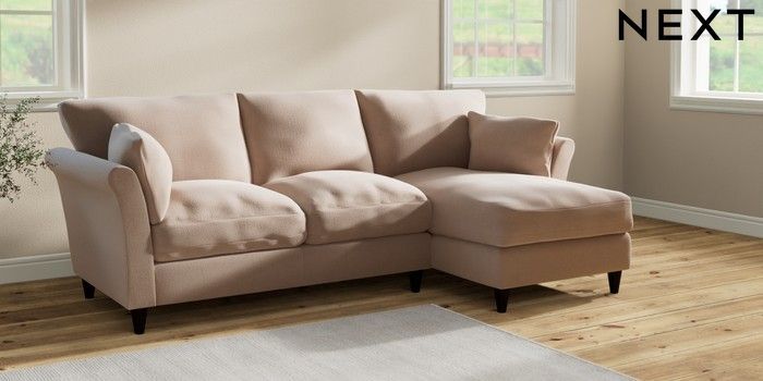 7.2.10 Buy Hartley Relaxed Sit Medium Sofa Chaise - Right Hand Relaxed Linen Look Mid Natural Low Conical - Dark from the Next UK online shop Click here to use our accessible website