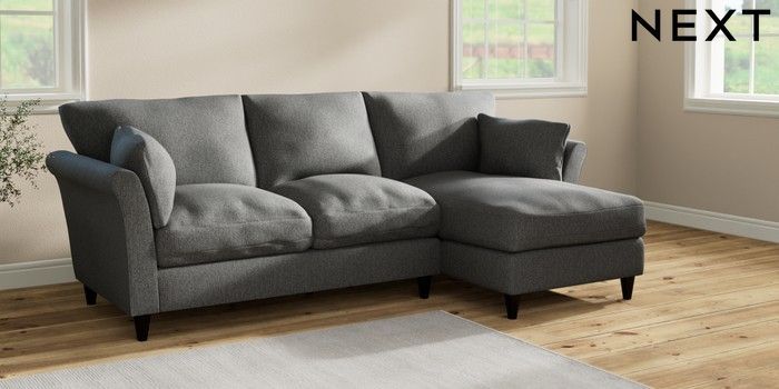 7.2.10 Buy Hartley Relaxed Sit Medium Sofa Chaise - Right Hand Tweedy Chenille Dark Grey Low Conical - Dark from the Next UK online shop Click here to use our accessible website