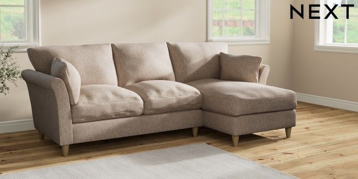 7.2.10 Buy Hartley Relaxed Sit Medium Sofa Chaise - Right Hand Tweedy Chenille Mid Natural Low Conical - Light from the Next UK online shop Click here to use our accessible website