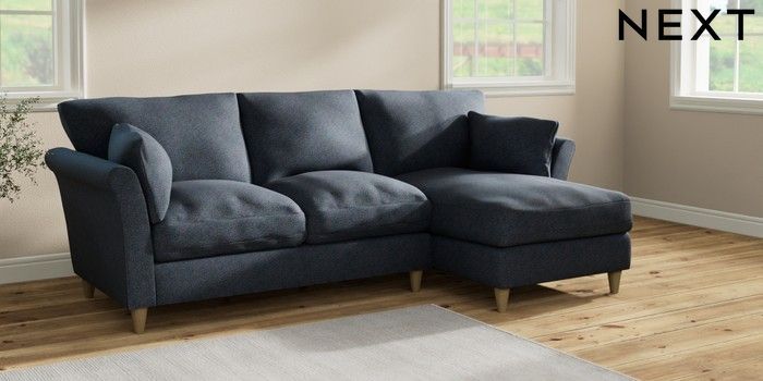 7.2.10 Buy Hartley Relaxed Sit Medium Sofa Chaise - Right Hand Tweedy Chenille Navy Blue Low Conical - Light from the Next UK online shop Click here to use our accessible website