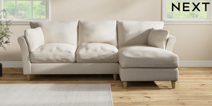 7.3.1 Buy Hartley Relaxed Sit Medium Sofa Chaise - Right Hand Tweedy Chenille Oyster Low Conical - Light from the Next UK online shop