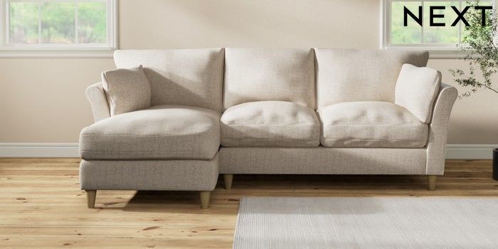 7.3.1 Buy Hartley Relaxed Sit Medium Sofa Chaise - Left Hand Chunky Weave Mid Natural Low Conical - Light from the Next UK online shop