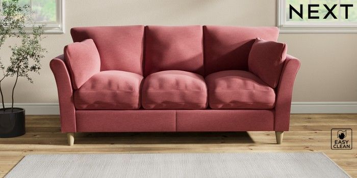 7.2.10 Buy Hartley Relaxed Sit 3 Cushion 3 Seater Sofa Fine Chenille Easy Clean Mid Pink Low Conical - Light from the Next UK online shop Click here to use our accessible website