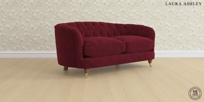7.0.3 Buy Hathersage by Laura Ashley 2 Seater Sofa Alwyn Velvet Burgundy Red Low Brass Castor - Teak from the Next UK online shop Click here to use our accessible website