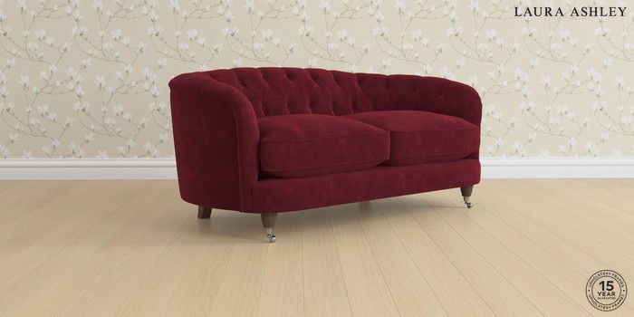 7.2.5 Buy Hathersage by Laura Ashley 2 Seater Sofa Alwyn Velvet Burgundy Red Low Chrome Castor - Chestnut from the Next UK online shop Click here to use our accessible website