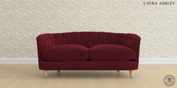 7.0.3 Buy Hathersage by Laura Ashley 2 Seater Sofa Alwyn Velvet Burgundy Red Low Turned - Light Oak from the Next UK online shop Click here to use our accessible website