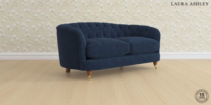 7.0.3 Buy Hathersage by Laura Ashley 2 Seater Sofa Alwyn Velvet Midnight Navy Low Brass Castor - Teak from the Next UK online shop Click here to use our accessible website