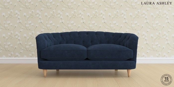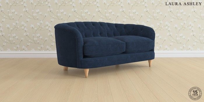 7.0.3 Buy Hathersage by Laura Ashley 2 Seater Sofa Alwyn Velvet Midnight Navy Low Turned - Light Oak from the Next UK online shop Click here to use our accessible website