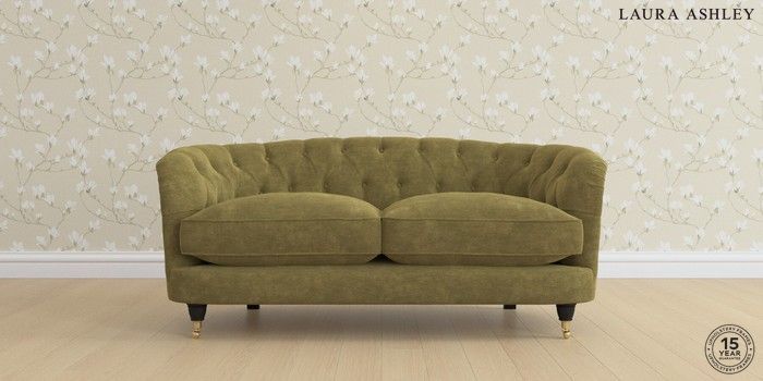 7.0.3 Buy Hathersage by Laura Ashley 2 Seater Sofa Alwyn Velvet Olive Green Low Brass Castor - Black from the Next UK online shop Click here to use our accessible website