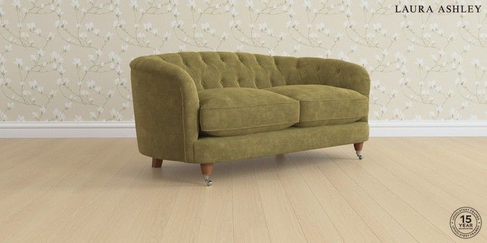 7.0.3 Buy Hathersage by Laura Ashley 2 Seater Sofa Alwyn Velvet Olive Green Low Chrome Castor - Teak from the Next UK online shop Click here to use our accessible website