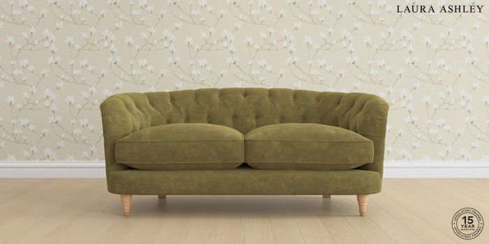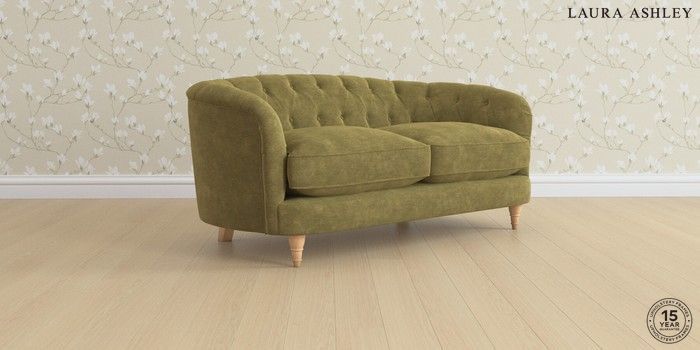 7.0.3 Buy Hathersage by Laura Ashley 2 Seater Sofa Alwyn Velvet Olive Green Low Turned - Light Oak from the Next UK online shop Click here to use our accessible website