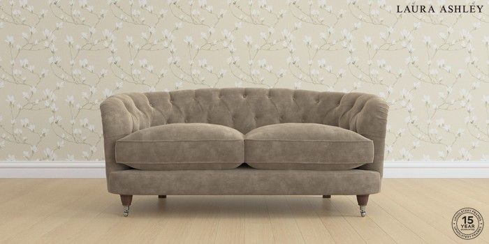 7.0.3 Buy Hathersage by Laura Ashley 2 Seater Sofa Alwyn Velvet Truffle Natural Low Chrome Castor - Chestnut from the Next UK online shop Click here to use our accessible website
