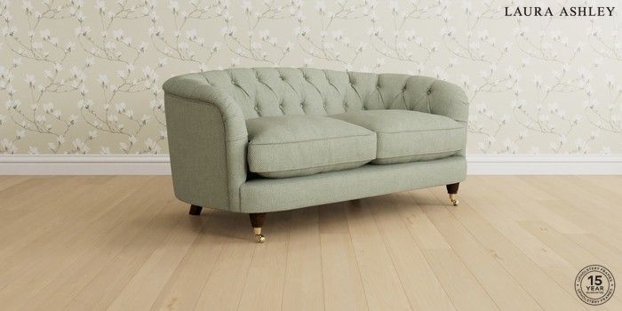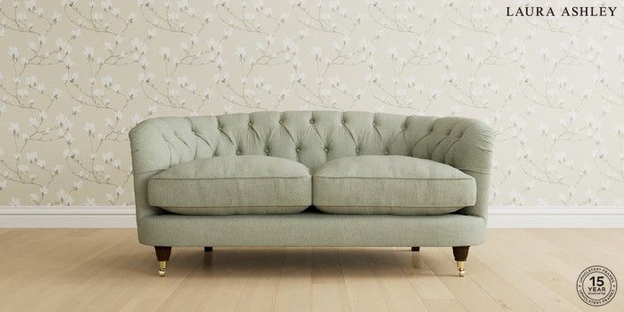 7.0.3 Buy Hathersage by Laura Ashley 2 Seater Sofa Anneliese Sage Green Low Brass Castor - Chestnut from the Next UK online shop Click here to use our accessible website