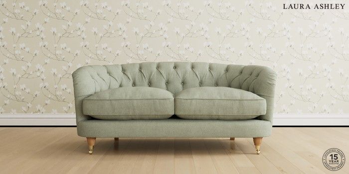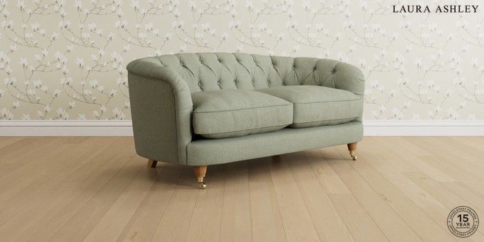 7.0.3 Buy Hathersage by Laura Ashley 2 Seater Sofa Anneliese Sage Green Low Brass Castor - Light Oak from the Next UK online shop Click here to use our accessible website