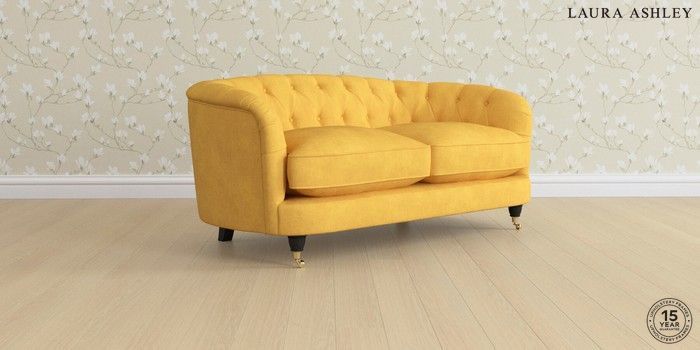 7.0.3 Buy Hathersage by Laura Ashley 2 Seater Sofa Bainton Ochre Yellow Low Brass Castor - Black from the Next UK online shop Click here to use our accessible website