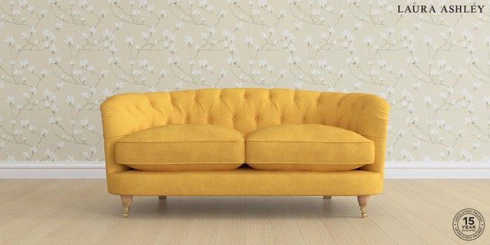 7.0.3 Buy Hathersage by Laura Ashley 2 Seater Sofa Bainton Ochre Yellow Low Brass Castor - Light Oak from the Next UK online shop Click here to use our accessible website