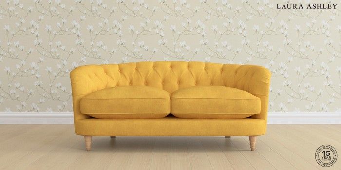 7.0.3 Buy Hathersage by Laura Ashley 2 Seater Sofa Bainton Ochre Yellow Low Turned - Light Oak from the Next UK online shop Click here to use our accessible website