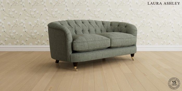 7.0.3 Buy Hathersage by Laura Ashley 2 Seater Sofa Bainton Sage Green Low Brass Castor - Chestnut from the Next UK online shop Click here to use our accessible website