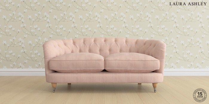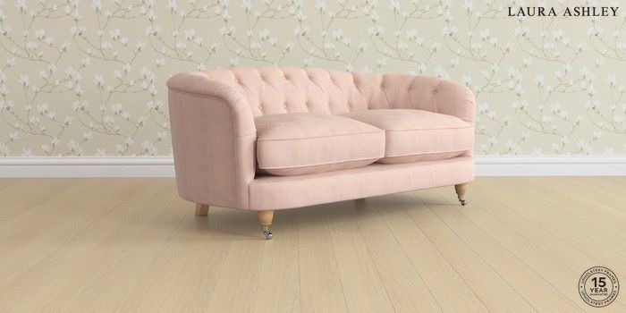 7.0.3 Buy Hathersage by Laura Ashley 2 Seater Sofa Edwin Chenille Blush Pink Low Chrome Castor - Light Oak from the Next UK online shop Click here to use our accessible website