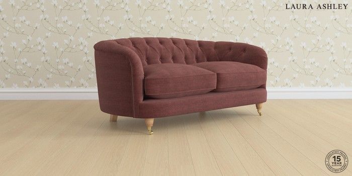 7.0.3 Buy Hathersage by Laura Ashley 2 Seater Sofa Edwin Chenille Burgundy Red Low Brass Castor - Light Oak from the Next UK online shop Click here to use our accessible website