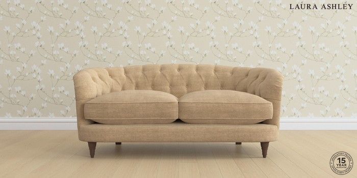 7.0.3 Buy Hathersage by Laura Ashley 2 Seater Sofa Edwin Chenille Gold Natural Low Turned - Chestnut from the Next UK online shop Click here to use our accessible website