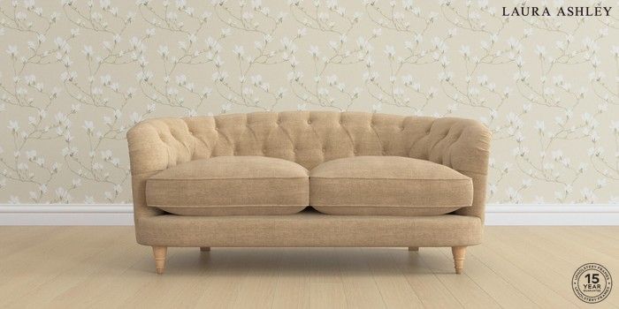 7.0.3 Buy Hathersage by Laura Ashley 2 Seater Sofa Edwin Chenille Gold Natural Low Turned - Light Oak from the Next UK online shop Click here to use our accessible website