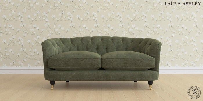 7.0.3 Buy Hathersage by Laura Ashley 2 Seater Sofa Edwin Chenille Hedgerow Green Low Brass Castor - Black from the Next UK online shop Click here to use our accessible website