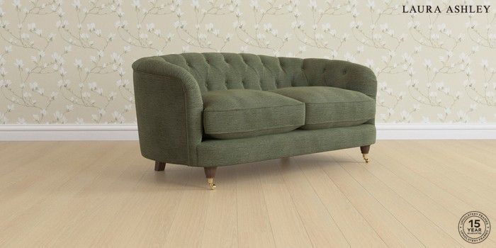 7.0.3 Buy Hathersage by Laura Ashley 2 Seater Sofa Edwin Chenille Hedgerow Green Low Brass Castor - Chestnut from the Next UK online shop Click here to use our accessible website