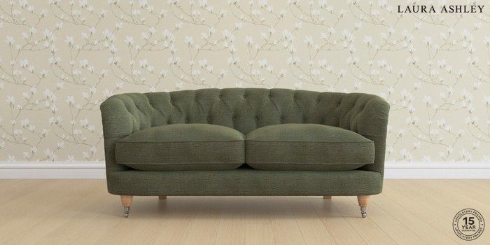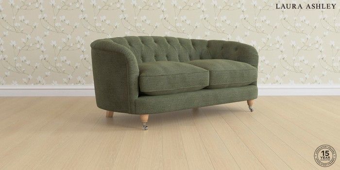 7.0.3 Buy Hathersage by Laura Ashley 2 Seater Sofa Edwin Chenille Hedgerow Green Low Chrome Castor - Light Oak from the Next UK online shop Click here to use our accessible website