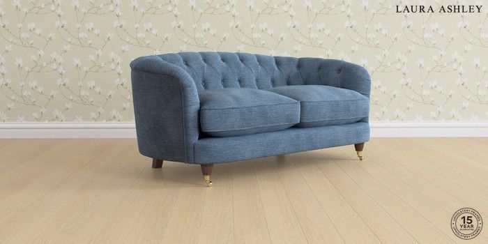 7.0.3 Buy Hathersage by Laura Ashley 2 Seater Sofa Edwin Chenille Seaspray Blue Low Brass Castor - Chestnut from the Next UK online shop Click here to use our accessible website