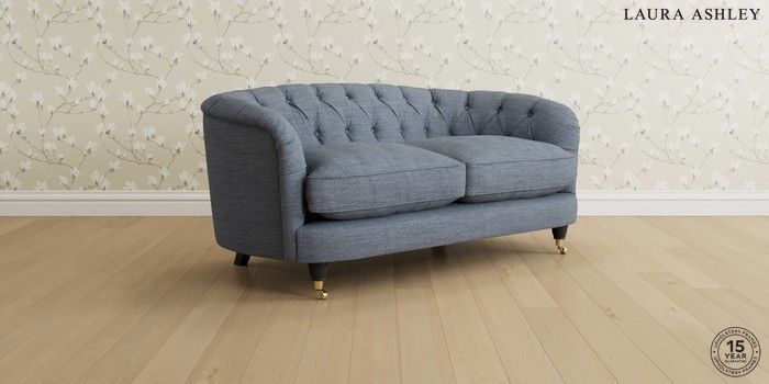 7.0.3 Buy Hathersage by Laura Ashley 2 Seater Sofa Harley Seaspray Blue Low Brass Castor - Black from the Next UK online shop Click here to use our accessible website