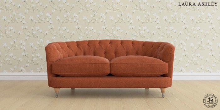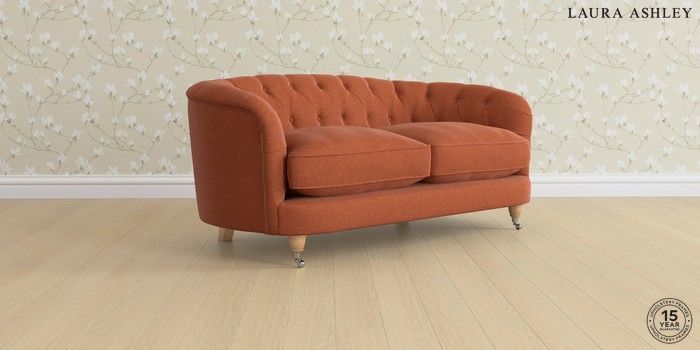 7.2.4 Buy Hathersage by Laura Ashley 2 Seater Sofa Harley Terracotta Orange Low Chrome Castor - Light Oak from the Next UK online shop Click here to use our accessible website