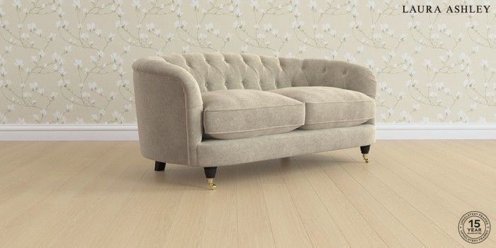 7.0.3 Buy Hathersage by Laura Ashley 2 Seater Sofa Lundar Chenille Truffle Natural Low Brass Castor - Black from the Next UK online shop Click here to use our accessible website