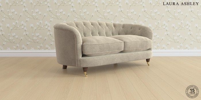 7.0.3 Buy Hathersage by Laura Ashley 2 Seater Sofa Lundar Chenille Truffle Natural Low Brass Castor - Chestnut from the Next UK online shop Click here to use our accessible website